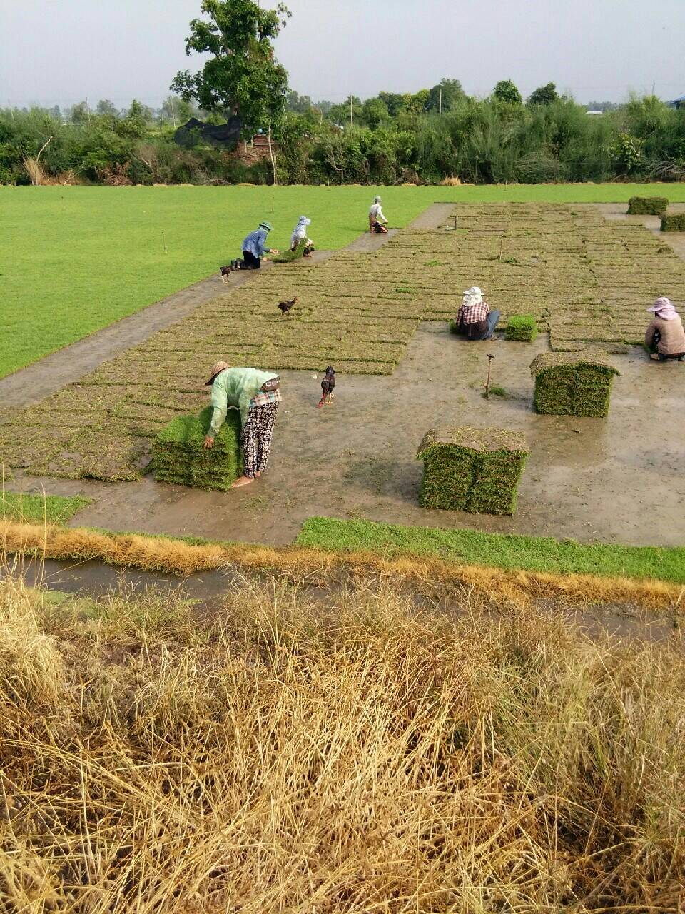 เราตัดหญ้าเมื่อมีการสั่งซื้อเท่านั้น หญ้าของเราจึงสดใหม่มีดินติดหนาอัตราการรอดสูง